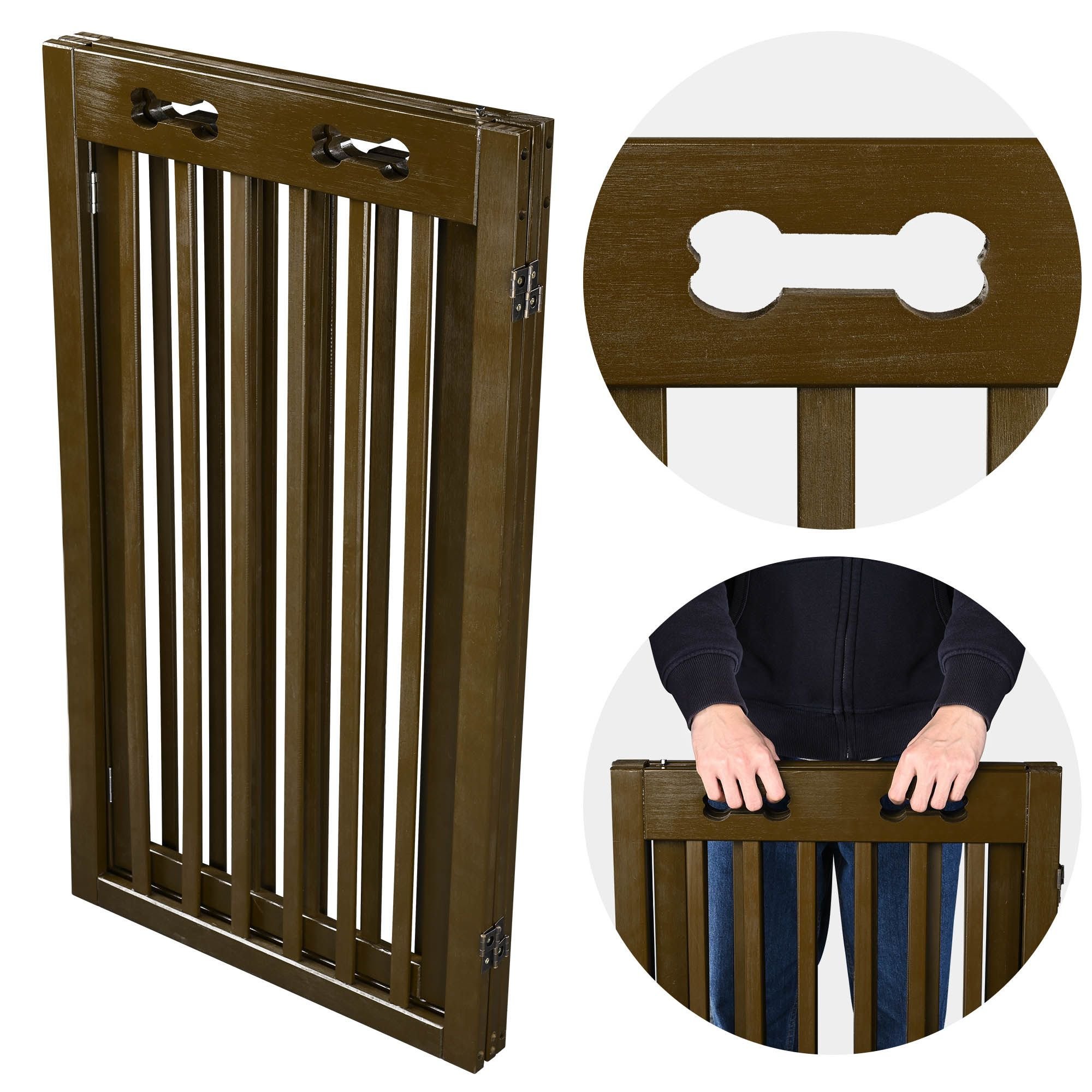 - Adjustable &   Customizable - This 60"x36" 3-Panel Folding Wooden Pet Fence comes   with 360-degree rotating panels for convenient adjusting and customizing of   different angles or positions as you need; creating a unique space for your   pets and confines them in a secure and safe manner