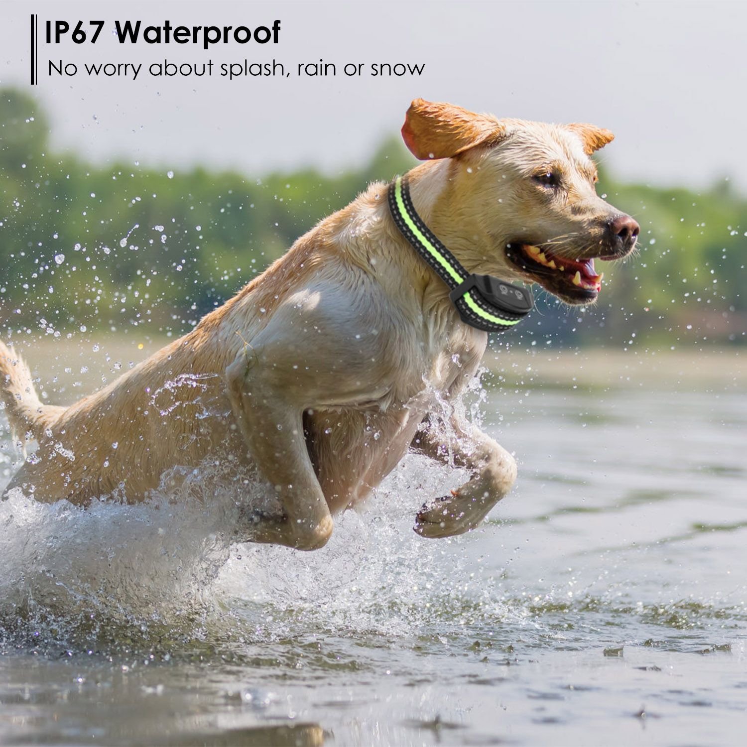 ** IP67 Waterproof*:IP67 waterproof material allows safe use of the collar indoors and outdoors in any weather conditions. Your pet can still play outside and enjoy the pool,pond and lake on rainy days.(The charging port needs to be covered the silicone plug).
