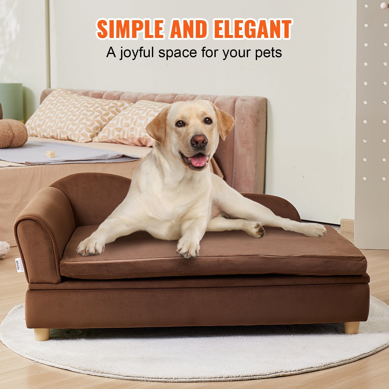 Home > VEVOR Pet Sofa, Dog Couch for Large-Sized Dogs and Cats, Soft Velvety Dog Sofa Bed, 110 lbs Loading Cat Sofa, Dark Brown
